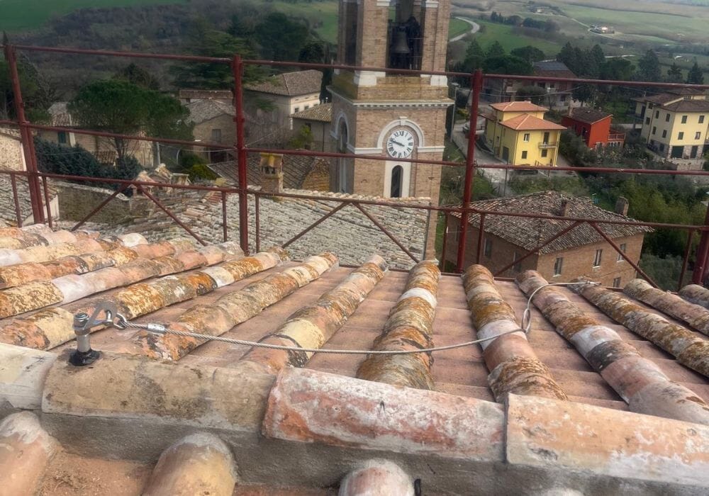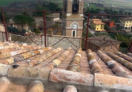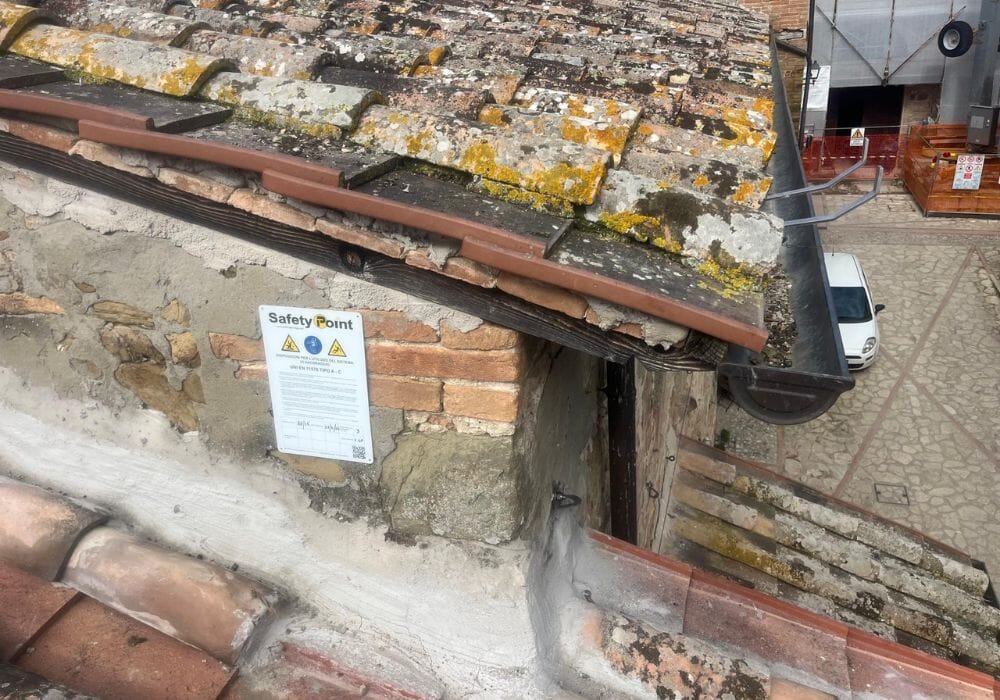 Fornitura e installazione di linea vita presso il centro storico di Compignano, nel comune di Marsciano (PG). L’intervento ha previsto la realizzazione di un sistema permanente studiato per integrarsi con il contesto architettonico esistente, garantendo al tempo stesso sicurezza e funzionalità nelle operazioni in quota. La soluzione adottata assicura discrezione visiva, affidabilità e praticità per le attività di manutenzione.