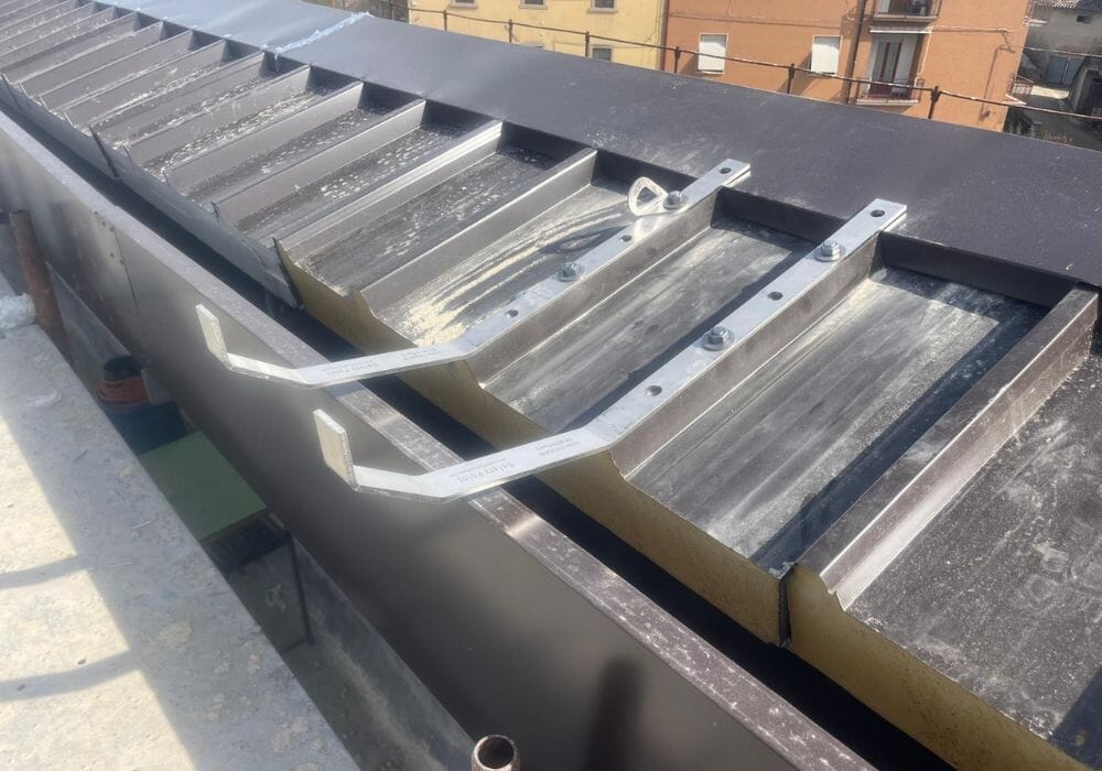 Fornitura e installazione di linea vita Metal Tipo C con accesso tramite scala presso la scuola di Pistrino (PG). L’intervento ha previsto la realizzazione di un sistema permanente progettato per consentire un accesso sicuro alla copertura e una gestione ordinata degli spostamenti in quota. La soluzione è stata studiata in funzione delle caratteristiche dell’edificio, garantendo praticità d’uso, affidabilità e conformità alle normative vigenti.
